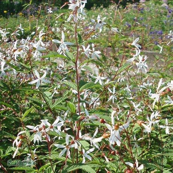 Perenn med robust, lite buskigt växtsätt som trivs i sol-halvskugga. Höjd 80 cm. Skir och luftig blomning med 80 cm höga vita blommor i juli-augusti. Vacker snittblomma.